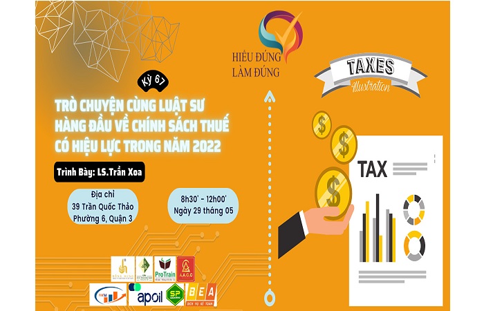 - Chủ đề: Trò chuyện cùng luật sư hàng đầu về chính sách thuế có hiệu lực trong năm 2022