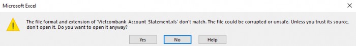 - Sau khi tải file về từ website Vietcombank, chúng ta sẽ có 1 file được đặt tên và có định dạng mặc định như hình: